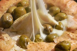 Focaccia Castelvetrano Olive Grilled Brie & Lambrusco bianco